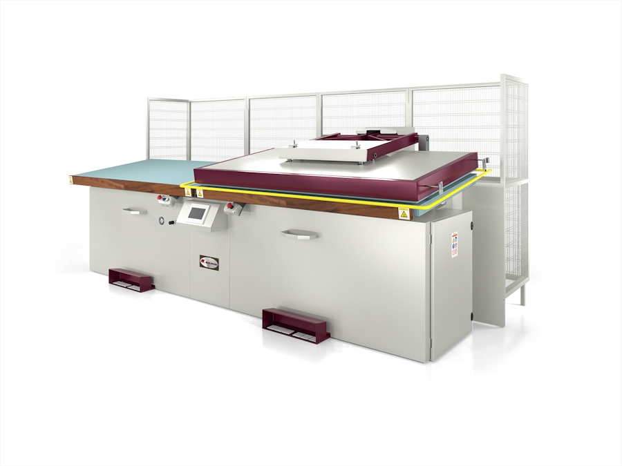 Doble prensa de vaporización/aspiración, con placa superior de vaporización, para planchar prendas de punto