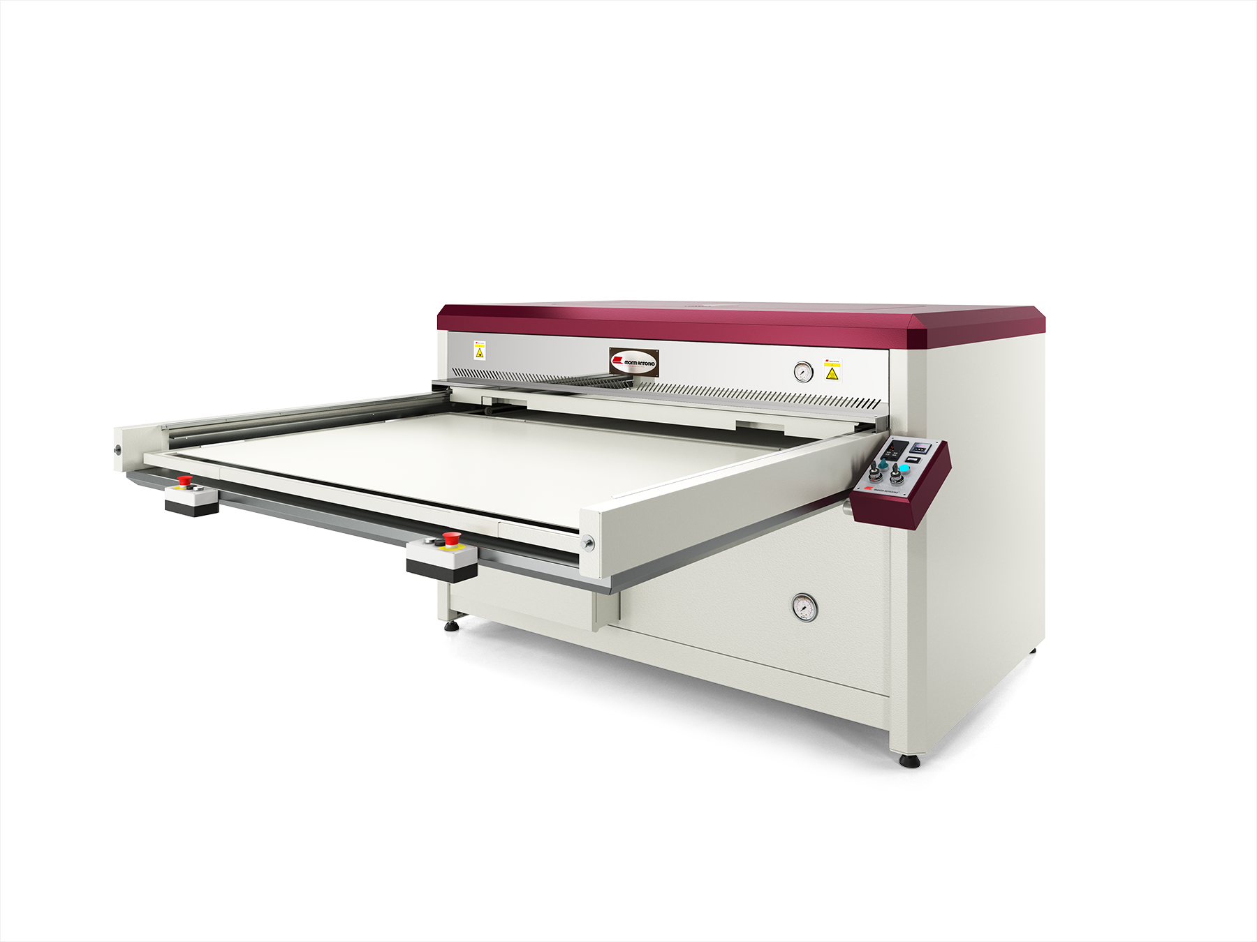 Pressa doppia idraulica per stampa transfer ed accoppiatura, con sottovuoto